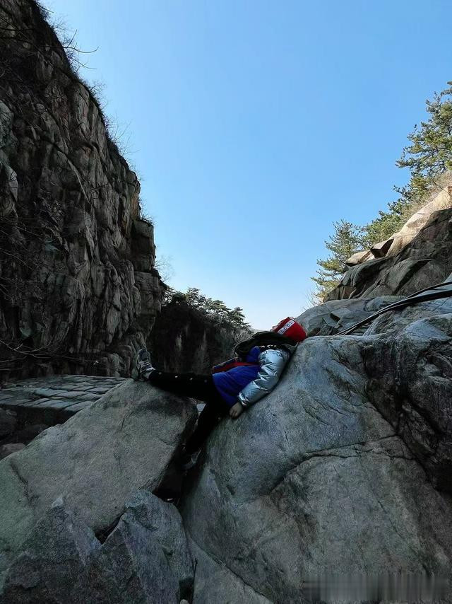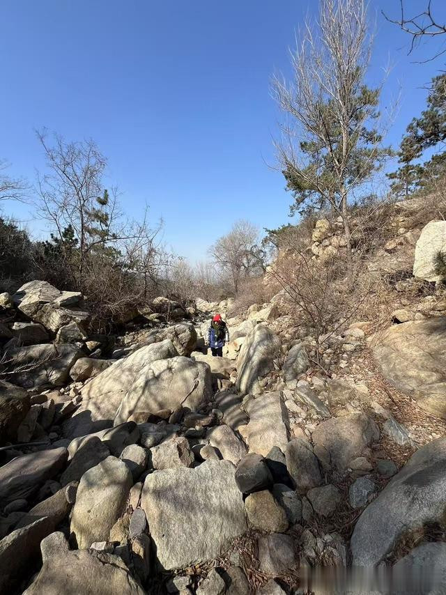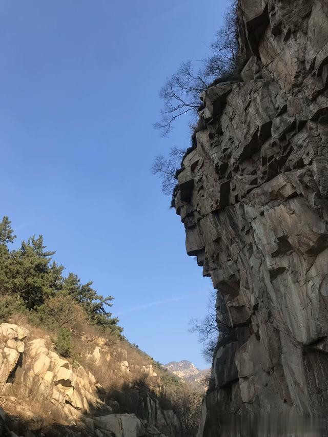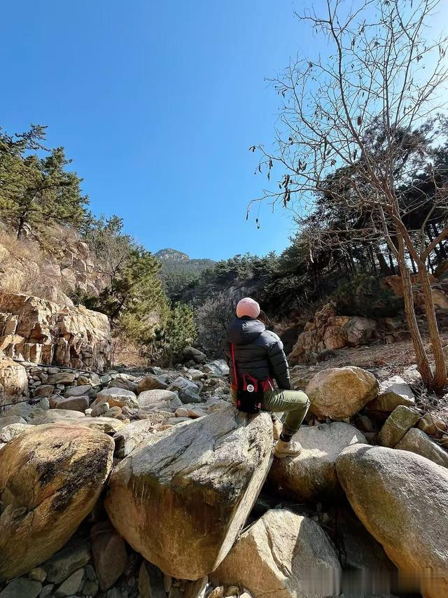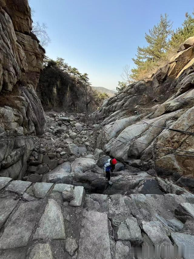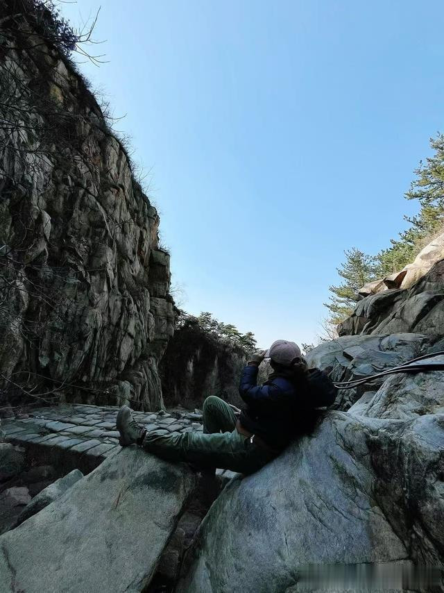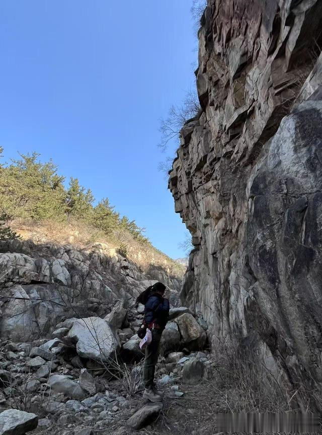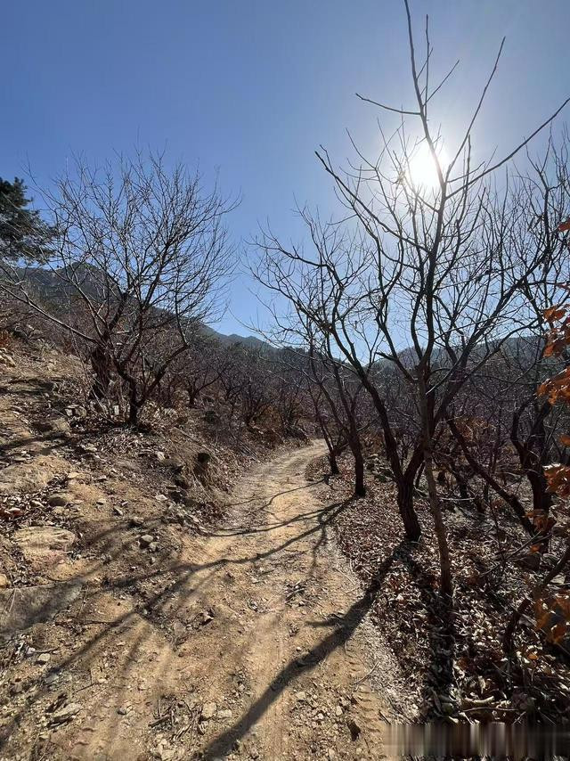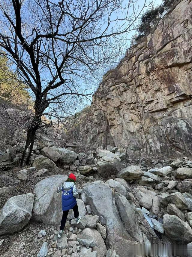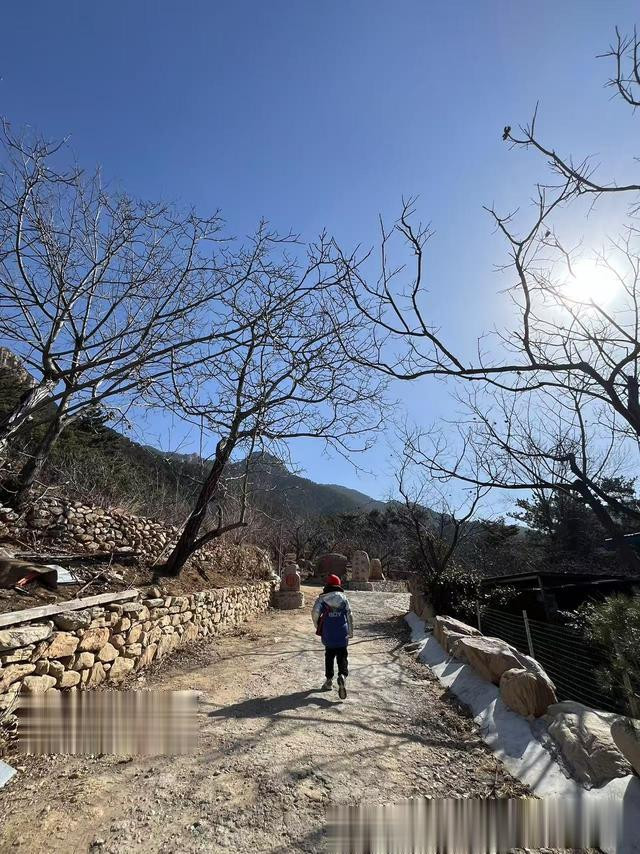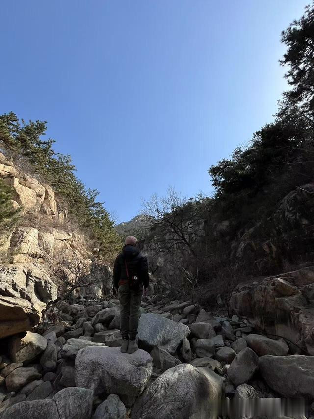 顺着林间土路径直往前,过大铁门后,大步流星迎向耀眼的太阳,灿烂又温暖的春日阳光洒下来,身上、额头上也冒出了细密的汗滴,但也不能摘下帽子和围巾,因为拐进河道时,两侧耸高的山林偶尔会遮住阳光,也让山谷里仍然保持着冬日的温度,偶有袭过的山风,将挂在脸颊上的汗珠吹落,感觉还是很清冷。